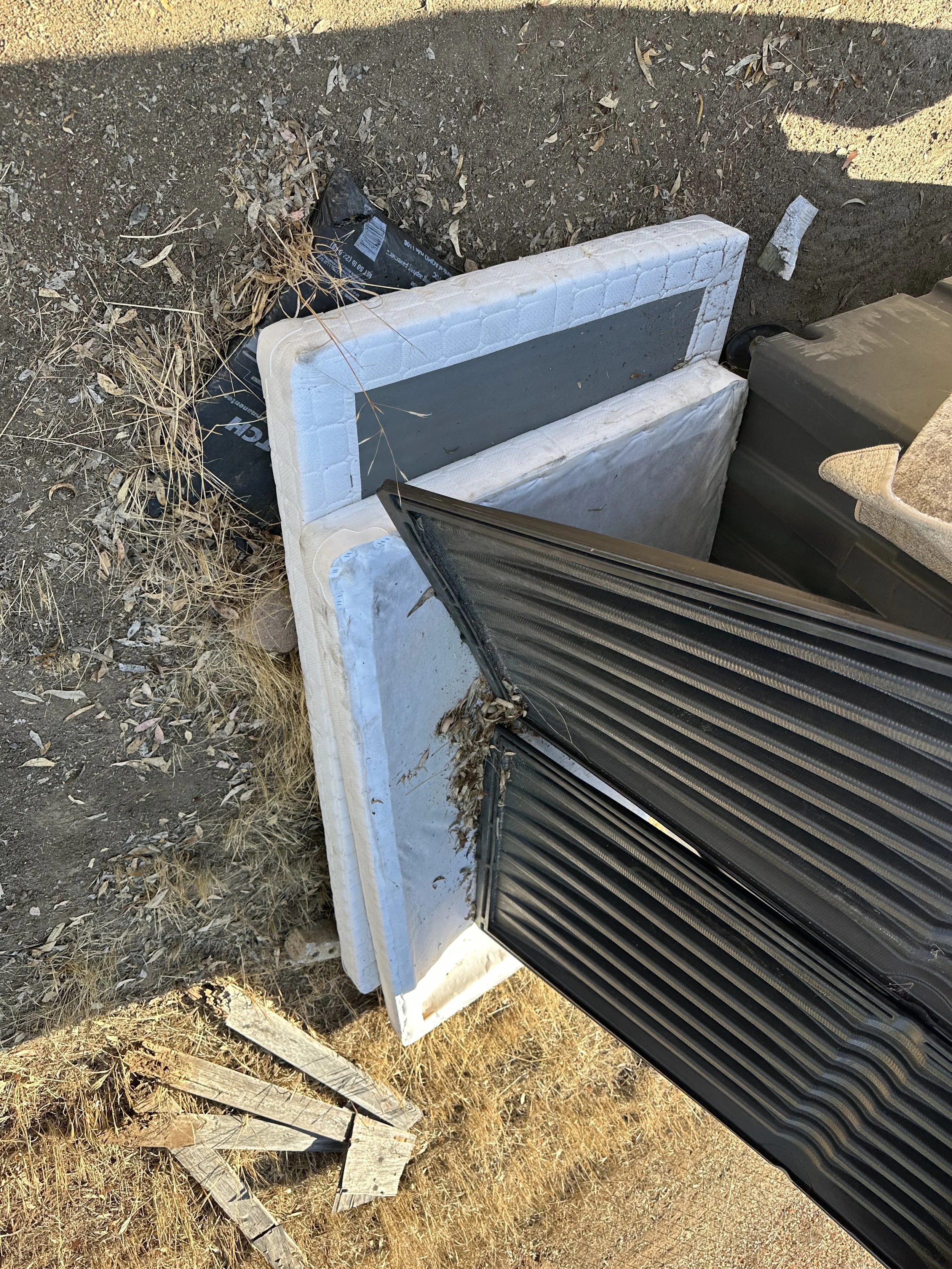 Customer had couple of mattresses around their property as well as misc junk. 1/8