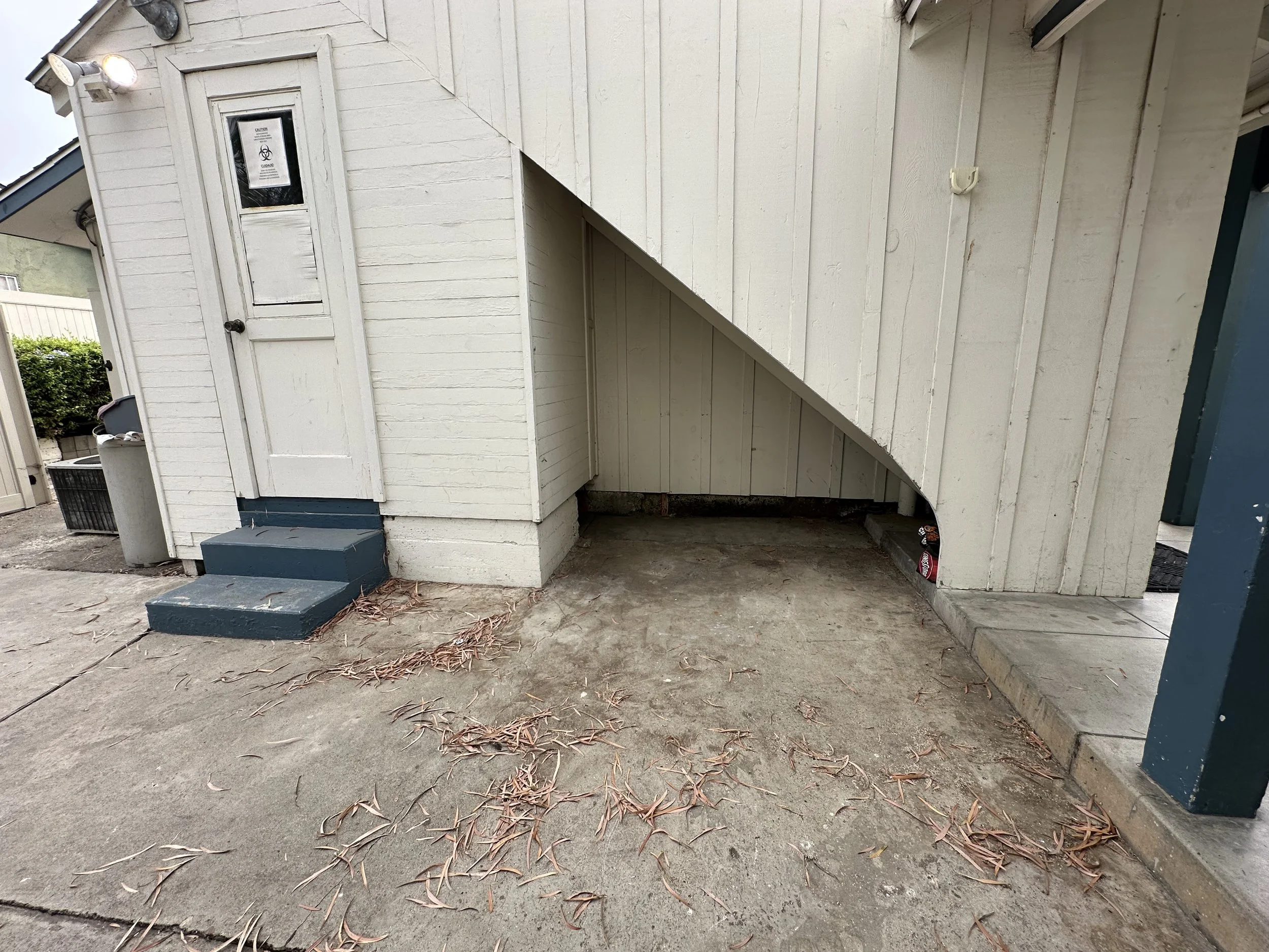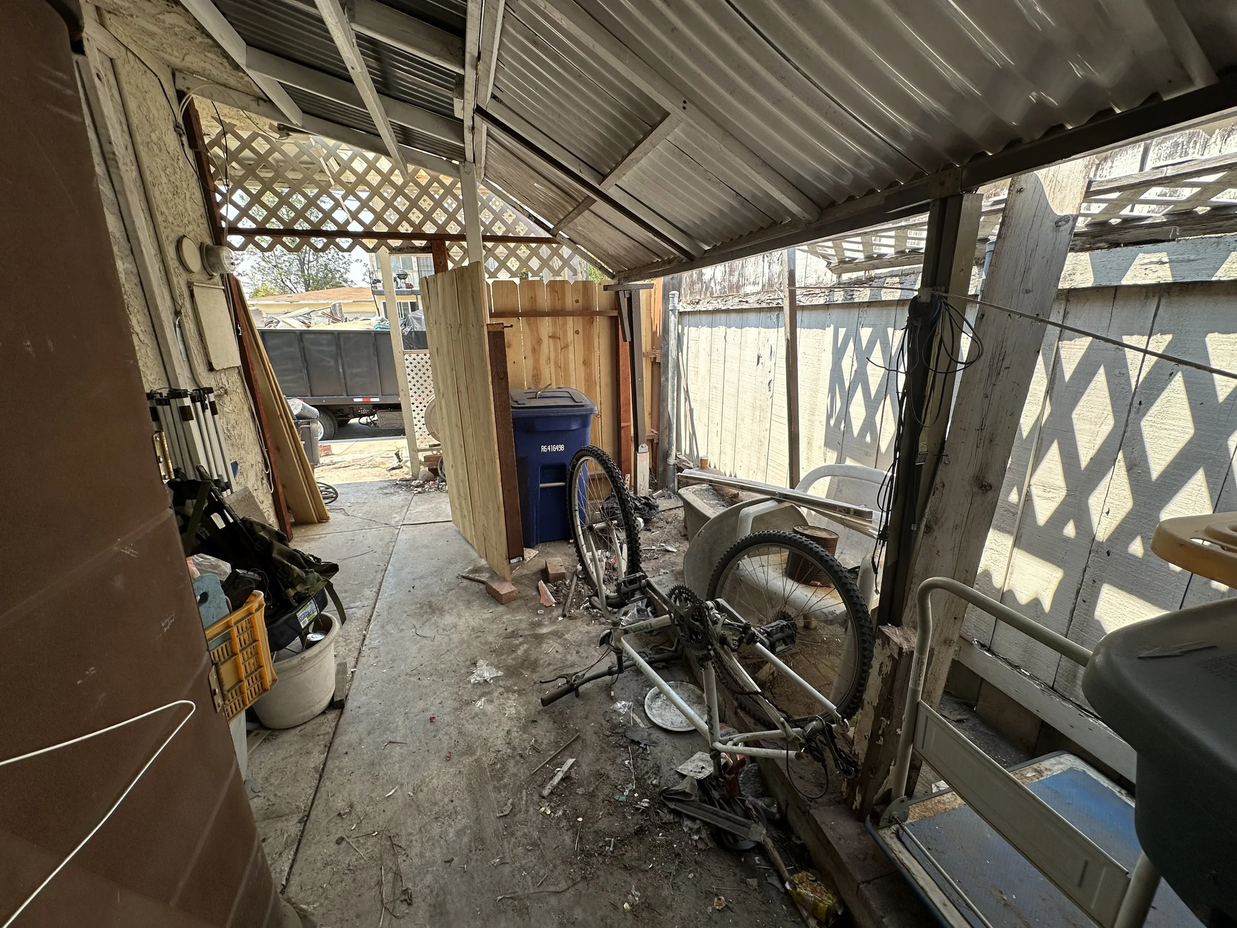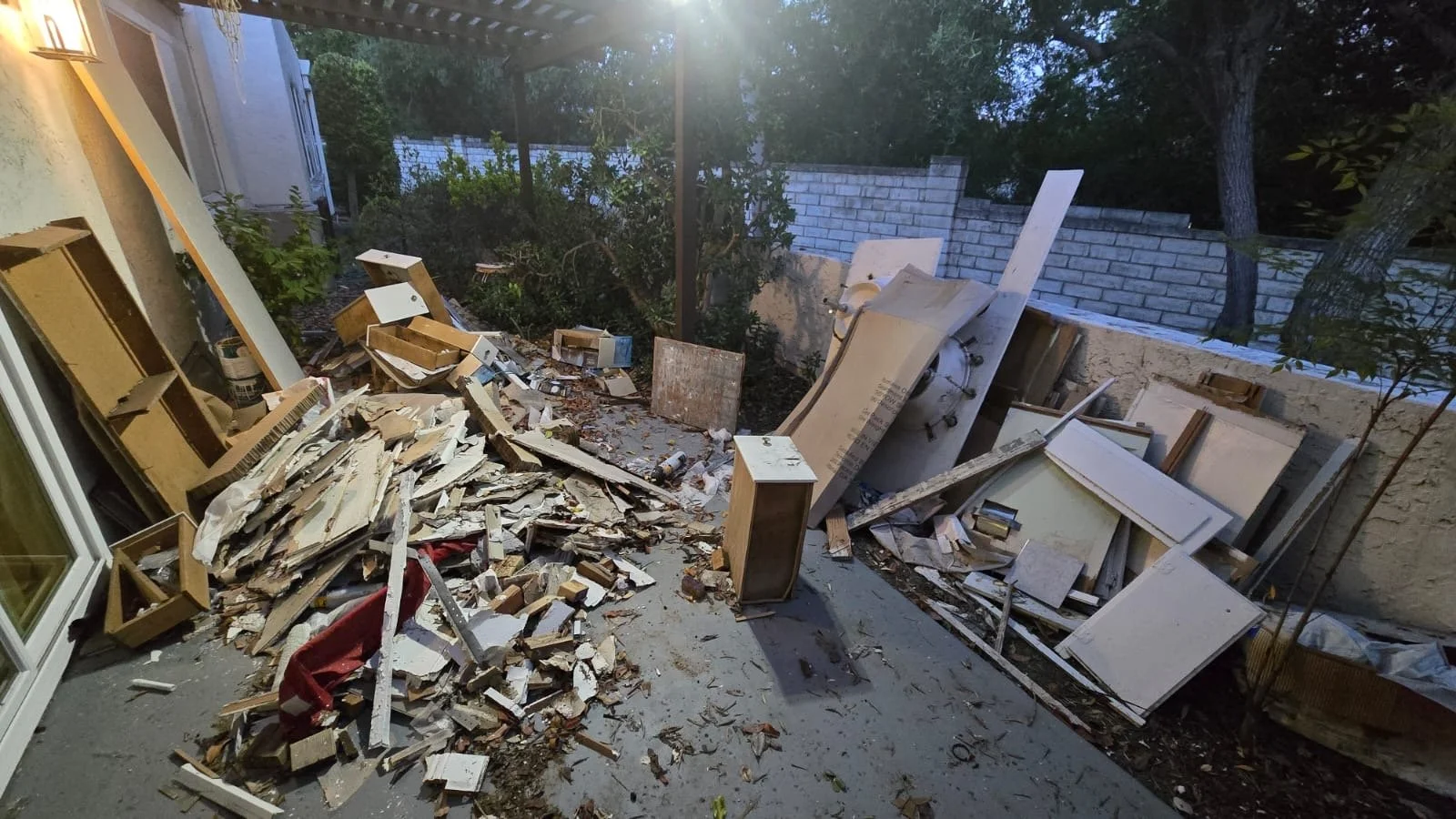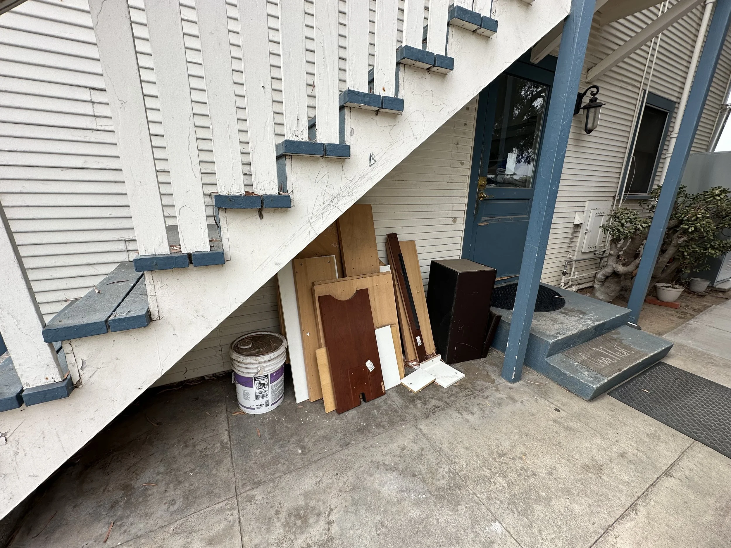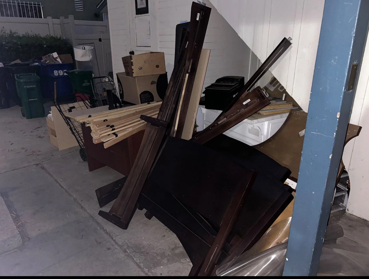 Customer had a broken down dresser and misc wood pieces stored under stairway.