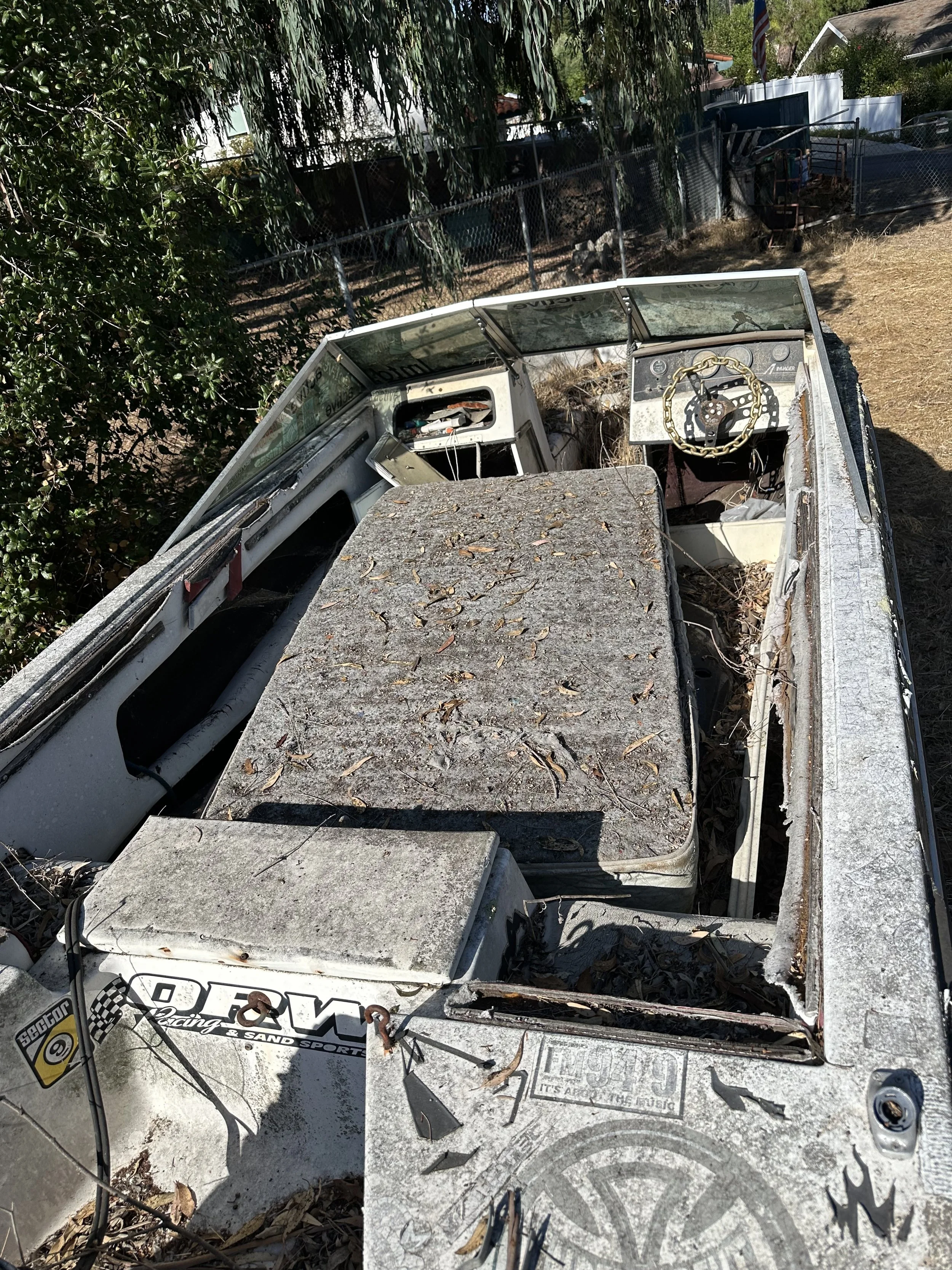 Customer had a huge pile of plywood, grills, shopping cart and tires.