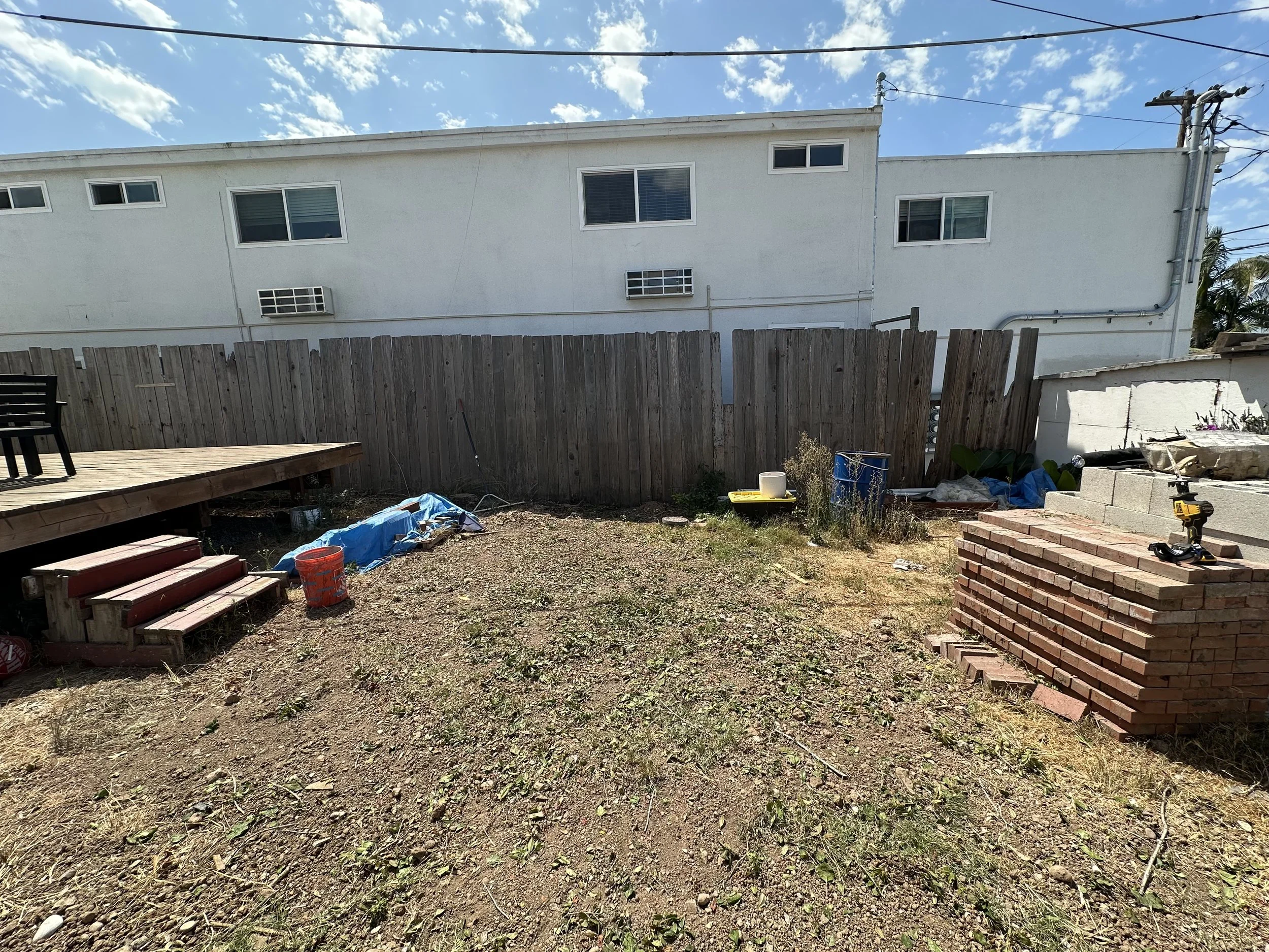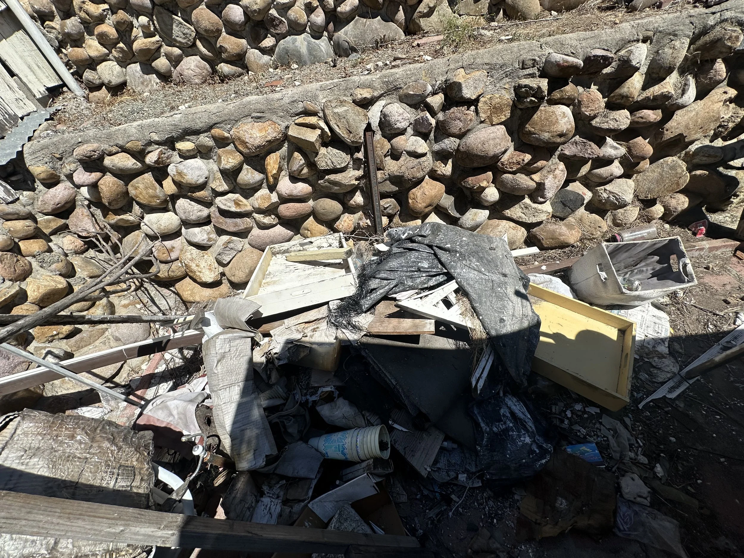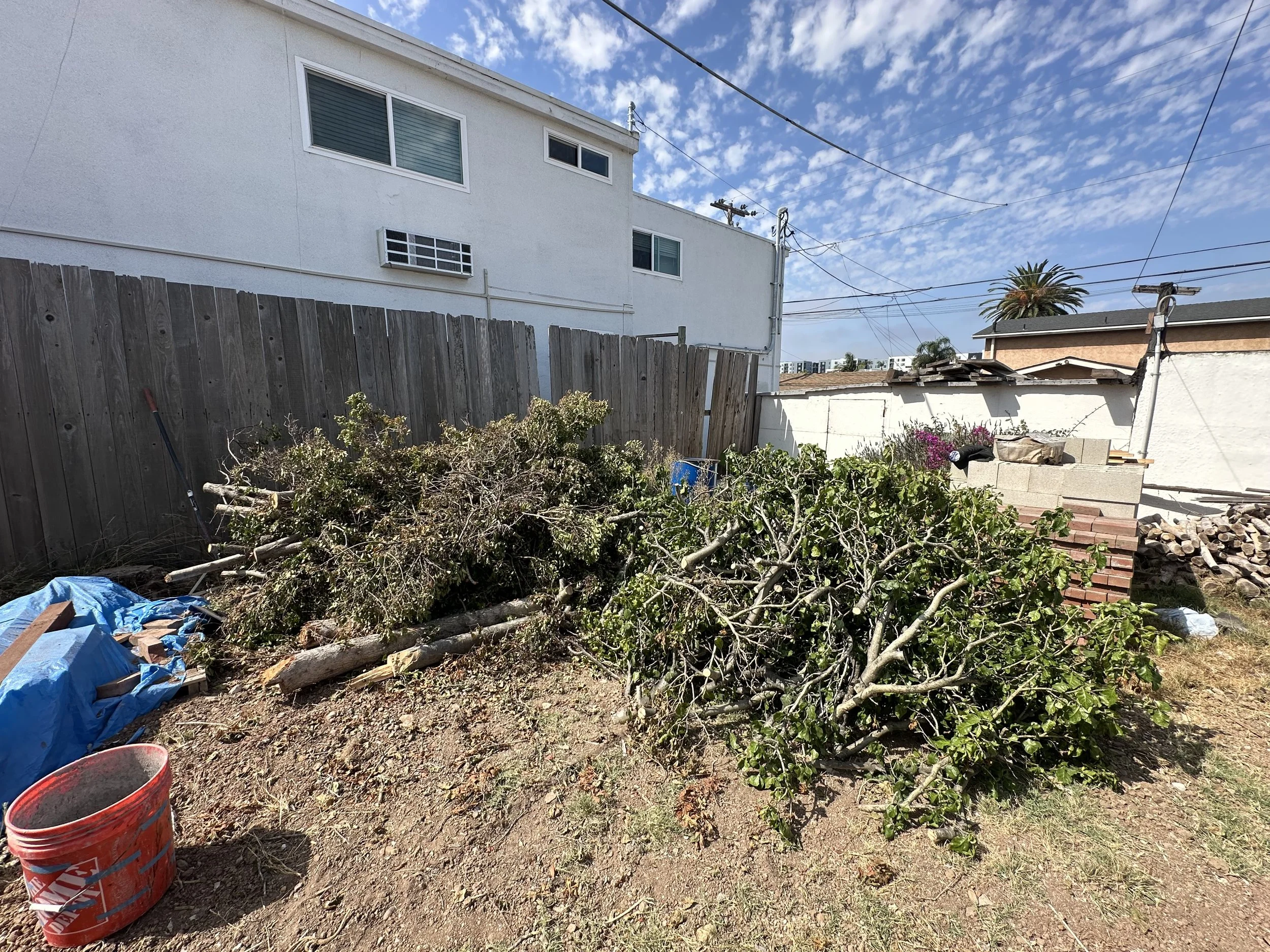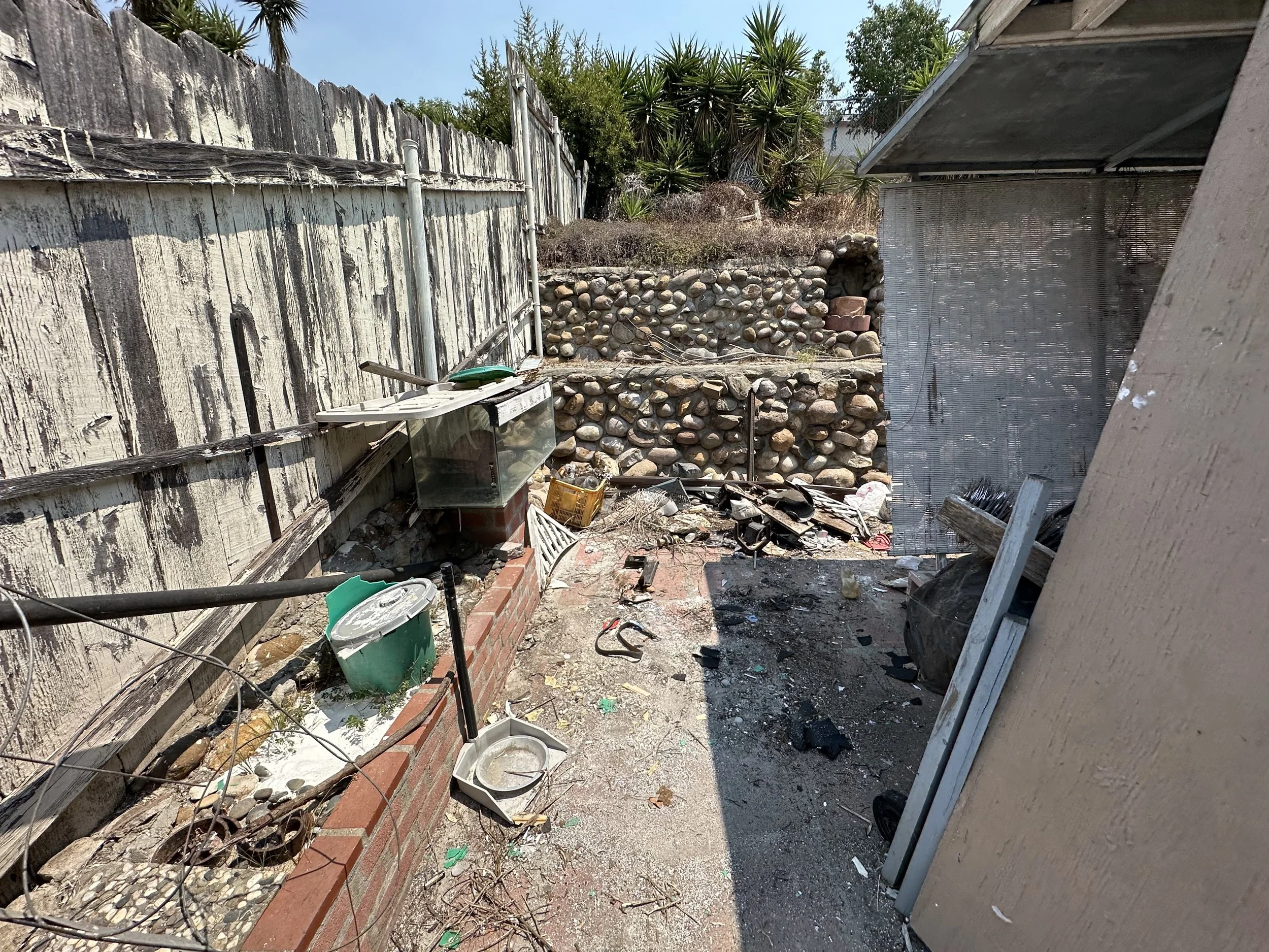 The 2 backyard trash piles have been removed, although there was much more work to be done.